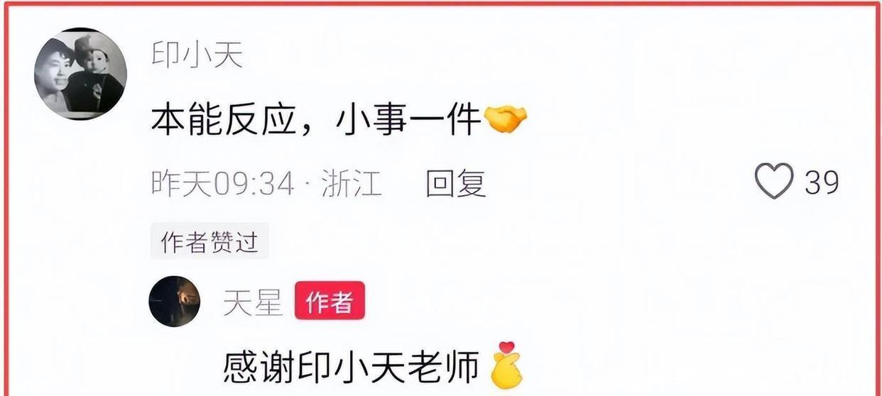 大家都没反应过来,只见印小天一个箭步冲上去,直接把我老婆从水里拉了出来!宋先生后来回想起那事,还真挺激动的。你得知道,那会儿天气已经变凉了,水里肯定也不好待。可印小天没半点犹豫,直接走进水里把人给救上来了。救完人后,他也没说啥,转身打算悄悄走开。